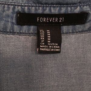 Sleeveless Denim Hi-Lo Tunic from Forever 21 - size M. Great pre loved condition, snap front, super soft & lightweight. Perfect for summer or layering in the fall! Color: medium wash blue. Measurements: pit to pit 19" - front length 25" - back length 27". Smoke-free/Pet-free home. Please feel free to ask any questions. No trades please 🌺
