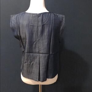 Sleeveless denim chambray top. Boxy fit. Hidden back zip closure. 100% lyocell.