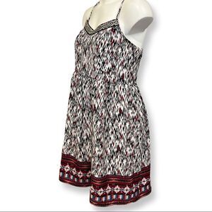 Keywords: sleeveless dress, casual dress, summer dress, sundress, aztec print, geometric print, boho dress, bohemian dress, vacation dress, beach dress, lightweight dress, elastic waist dress, women's dress