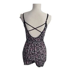 Sleeveless Floral Black Multicolor Romper Size 8 Pockets Elastic-Waist Jumpsuit