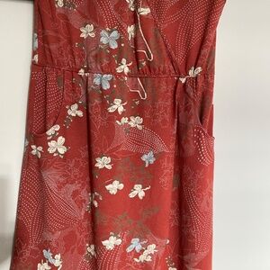 Pretty Salmon colored Sleeveless Dress with pockets. Stretchy waist makes it flattering and comfortable. Size Small but loose enough to fit a medium as well.