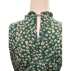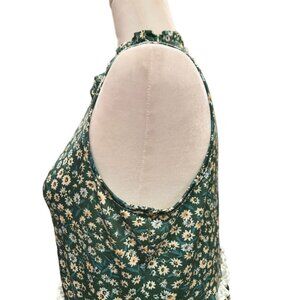 Sleeveless Green Floral Tiered Dress Medium With Ruffle Trim M Shein Midi