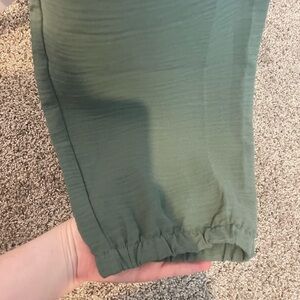 Chic and comfortable sleeveless green jumpsuit perfect for any occasion. Features a stylish drawstring waist for a flattering fit.
