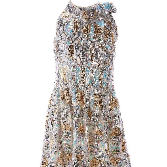 Perfect eye-catching party dress! Gold and silver sequin, pockets and flare.