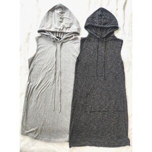 Sleeveless Hooded Tunic Tops Gray & Black Striped Size Small Lot of 2