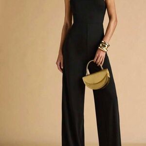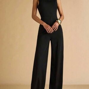 SLEEVELESS BACKLESS BOW DECOR WAIST ELEGANT JUMPSUIT Slim Fit Round Neck Zipper Wide Leg Hi-Stretch 94% Polyester 6% Elastane