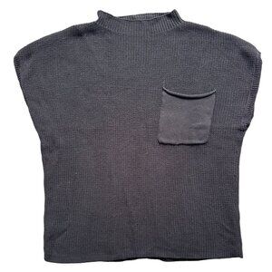 Sleeveless Knit Mock Neck Sweater Top With Pocket Gray By Anrabess 21" Length