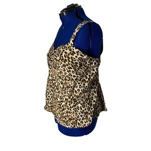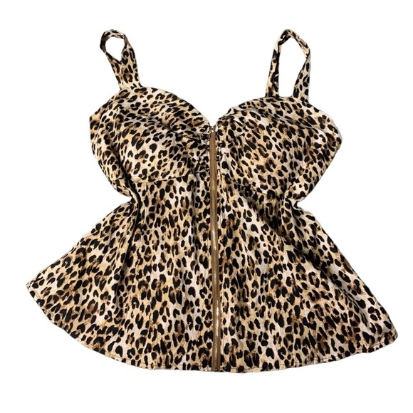 Sleeveless Leopard Print Spandex Zipper Front Sweetheart Strap Top 3XL size
