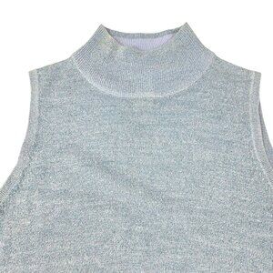 Sleeveless Light Blue Metallic Mock Turtleneck Sweater Dressbarn Size M JJ1823