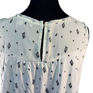 Sleeveless Loft Blouse Size Xs White & Black Floral Patterned Rayon Polyester