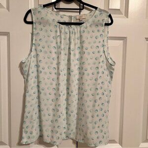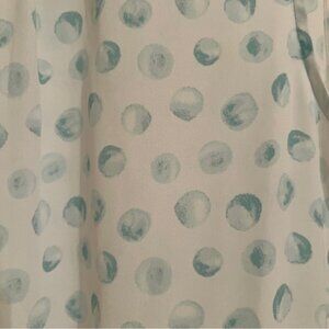 White with teal tone bubble pattern and gathered detail at neck. Breathable silky chiffon like material Great for summer months. EUC