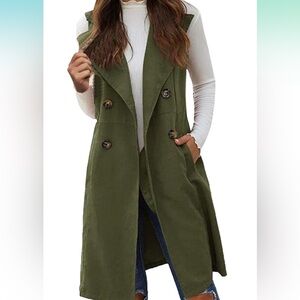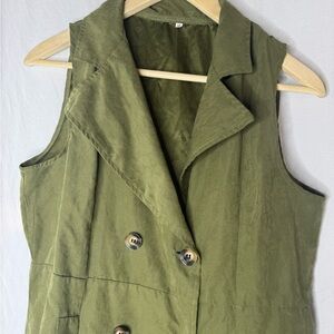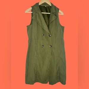 Sleeveless Long Button Vest Open Front Jacket or Dress with Pockets Size Medium