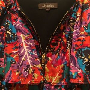 Great condition. Tropical, bright colors. Ruffles and zipper details. Super cute mini. Size small.