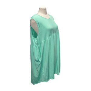 Sleeveless Mint Green Loose-Fit Tunic Dress With Pockets For Women Sz 2XL-3XL