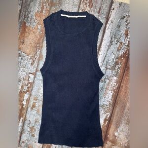 Elevate your wardrobe with this sleek sleeveless navy ribbed top. Perfect for layering or wearing on its own, this versatile piece is a must-have for any fashion-forward collection.