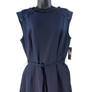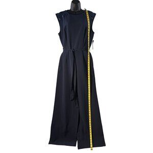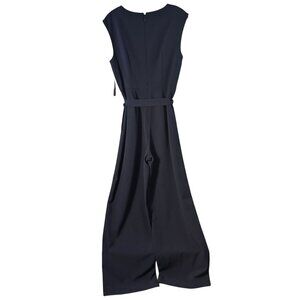 This elegant NY&C navy blue jumpsuit combines effortless style with modern sophistication. Featuring wide legs and button embellishments on the shoulders, it is thoughtfully designed for both comfort and statement-making appeal. The belted waist enhances its flattering silhouette, making it a versatile choice for various settings. Its sleeveless cut ensures adaptability across seasons.