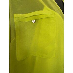Sleeveless Neon Green Sheer Button-Down Blouse With Front Pockets size 3X