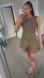 A New with tags stylish sleeveless knit dress in khaki green from Zara in size M. Features a flared skirt and button details. It measures about 33” in length. A super cute mini dress. It comes with an extra button.