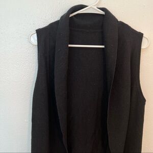 Great condition. No brand tag. Sleeveless open cardigan sweater. Black. 35% cashmere, 22% basolan wool, 24% cellulose fiber, 19% plant fiber. No size tag, my best guess is a medium; please see measurements to ensure proper fit. Pit to pit laying flat 18.5” Shoulder to hem 30”. All measurements are approximate and taken lying flat. Smoke free home. No trades, offers welcome.