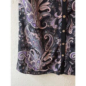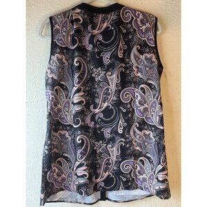 Sleeveless Paisley Button-Down Blouse shirt Large polyester V-neck READ