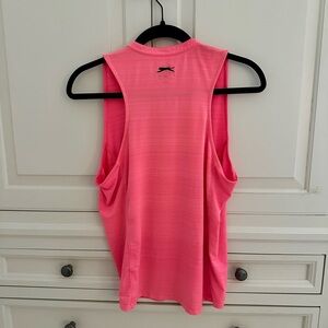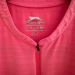 Brighten your wardrobe with this vibrant pink sleeveless golf top by Slazenger. Size Medium with partial zip