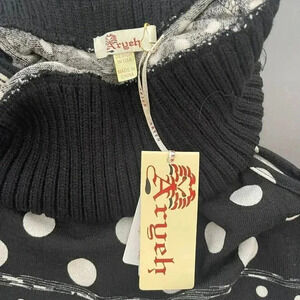 Sleeveless Polka Dot Dress - Knit Turtleneck Unique Design Medium