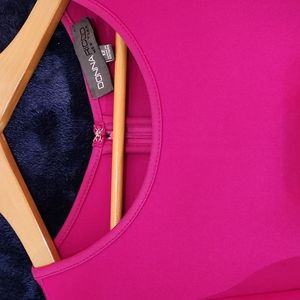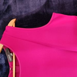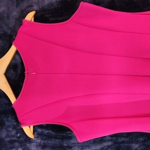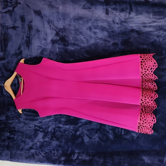 Gorgeous gently used and well taken care of Sleeveless Raspberry Dress. Beautiful lacey hem line with round neckline. Zipper in back. a very flattering fit.