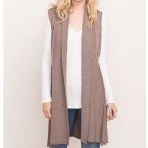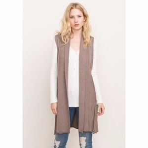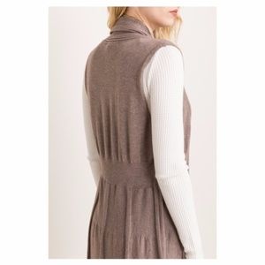 Sleeveless Ribbed Shawl Collar Long Brown Vest