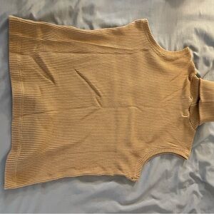 Elevate your wardrobe with this stylish sleeveless ribbed top. The tan color adds a versatile touch to any outfit.