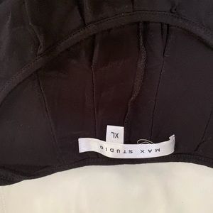 Beautiful details- kind of a mix of pleats and ruffles. It’s a solid black, not sheer as it may appear in photos. Dressy, cool summer top or great for layering. Too big for me now! Machine washable.