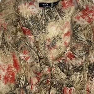 Cute ruffly button front blouse. Has a couple spots where trim has separated from the ruffle but not noticeable and hard to see at all when worn. In otherwise great pre-owned condition.