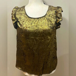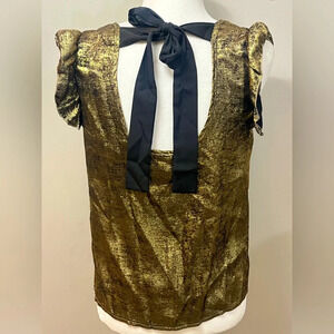 Sleeveless Ruffle Sleeve Tie Back Top Blouse Womens Medium Gold Metallic