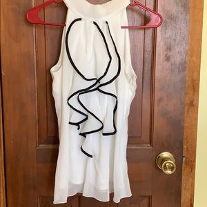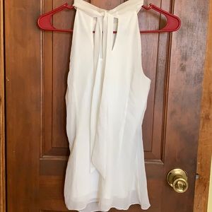 Sleeveless top that pairs well with a pencil skirt. Zips up the side and ties around the neck in the back.
