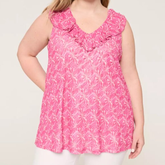 Sleeveless Ruffle V-Neck Mesh Top
