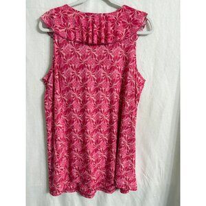 Double layered mesh Pink geometric pattern Size 14/16 95% polyester, 5% spandex