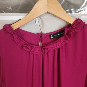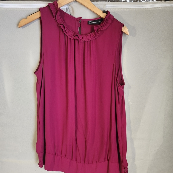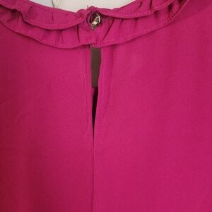 Elevate your style with this elegant sleeveless top featuring a charming ruffled neckline. Perfect for any occasion, this magenta top adds a pop of color to your wardrobe.