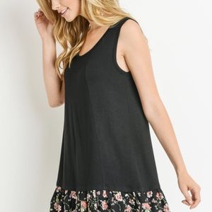 Sleeveless With Floral Contrast Tunic Top