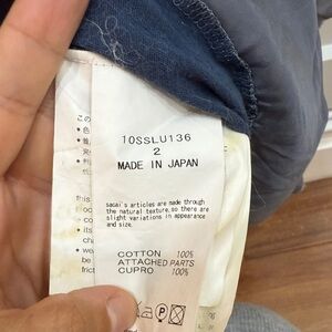 Stylish sleeveless tank dress in navy and gray. Sacai size 2 is an S/M. Features a pocket detail. Signs of wear as detailed in the pictures.