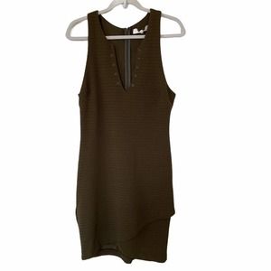 Sleeveless Sheath Dress Military Green Tulip Hem V-Neck Midi Size Large
