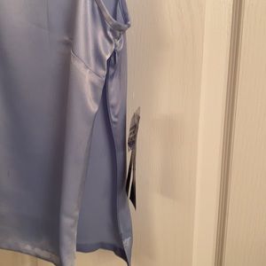 Polyester shell with back one-button closure and side hidden zipper.