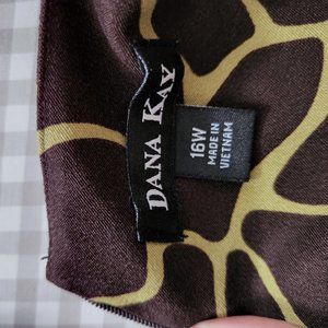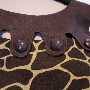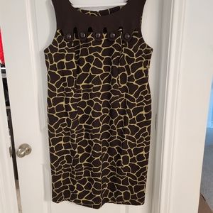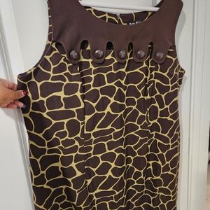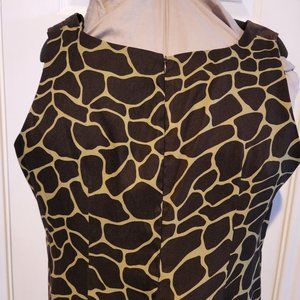 Lime Green and Chocolate sleeveless shell dress giraffe print flattering openings near neckline