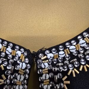 Sleeveless Shell Sweater Womens 1X Plus Black Beaded Quiet Luxury Holiday Glam