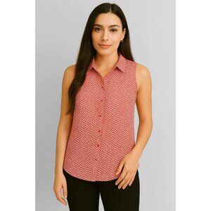 Sleeveless Shirt ANA Sheer Chevron Stripe Button Up Red Women's WOMAN'S Small