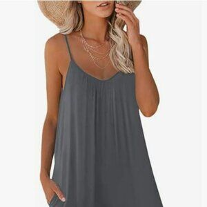 Womens Casual Sleeveless Strap Loose Adjustable Jumpsuits Stretchy Long Pants Romper with Pockets