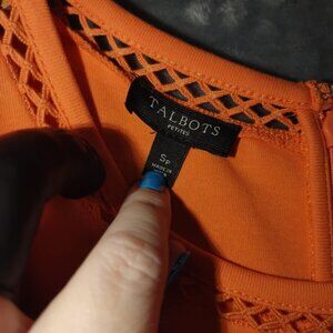 Sleeveless Talbots SP Small Petite Fit Orange Dress with Crochet Accents Cotton