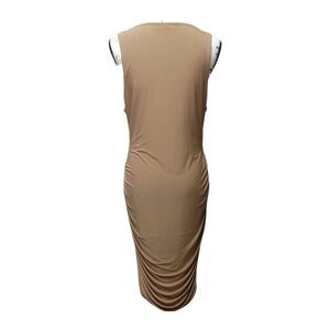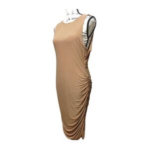 Sleeveless Tan Dress with Ruched sides Midi Length by Missguided Sz 14 P…