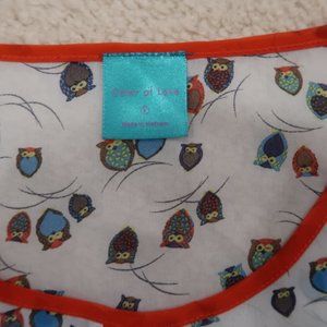 Sleeveless Top Owl print design Button details Long Back Hem 100% Polyester White and Red Orange Trim