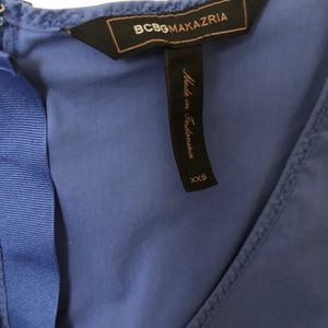 Blue sleeveless top, the armpits might be lightly faded from being worn but other than that it's in good condition