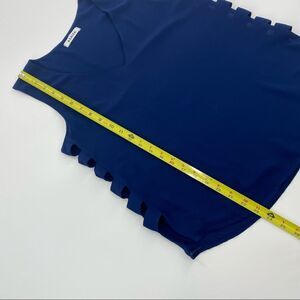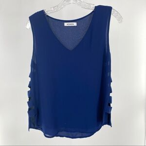 Azalea blue semi-sheer sleeveless top or blouse with openings along the side seams. Good used condition. Women's size M - medium.