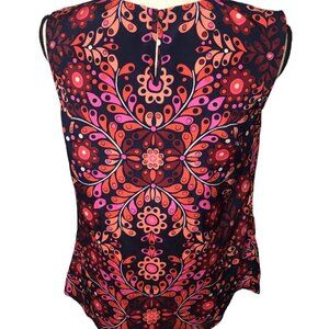 Sleeveless Top Size S Shell Red Blue Floral Paisley Print Shirt Lightweight Summer Spring Layer Under Jacket or Cardigan